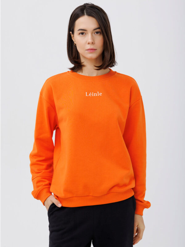 Women’s cotton jumper with cuffed long sleeves and a length that falls below the hips.