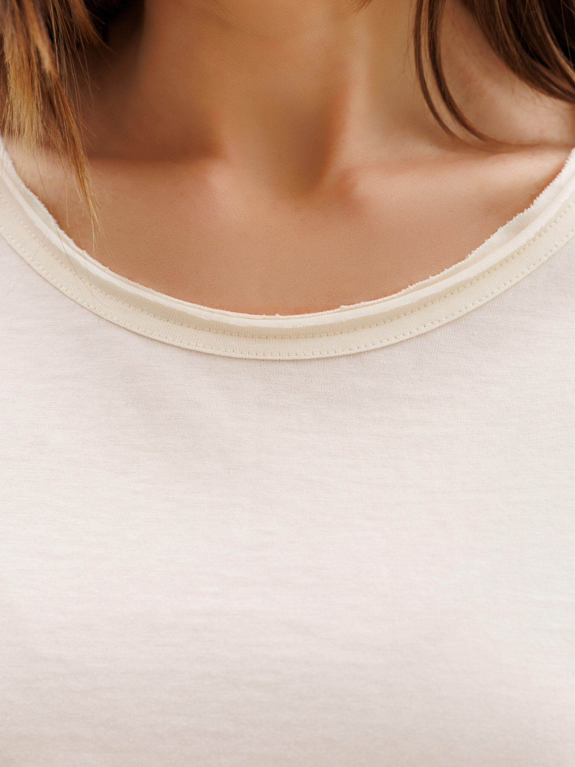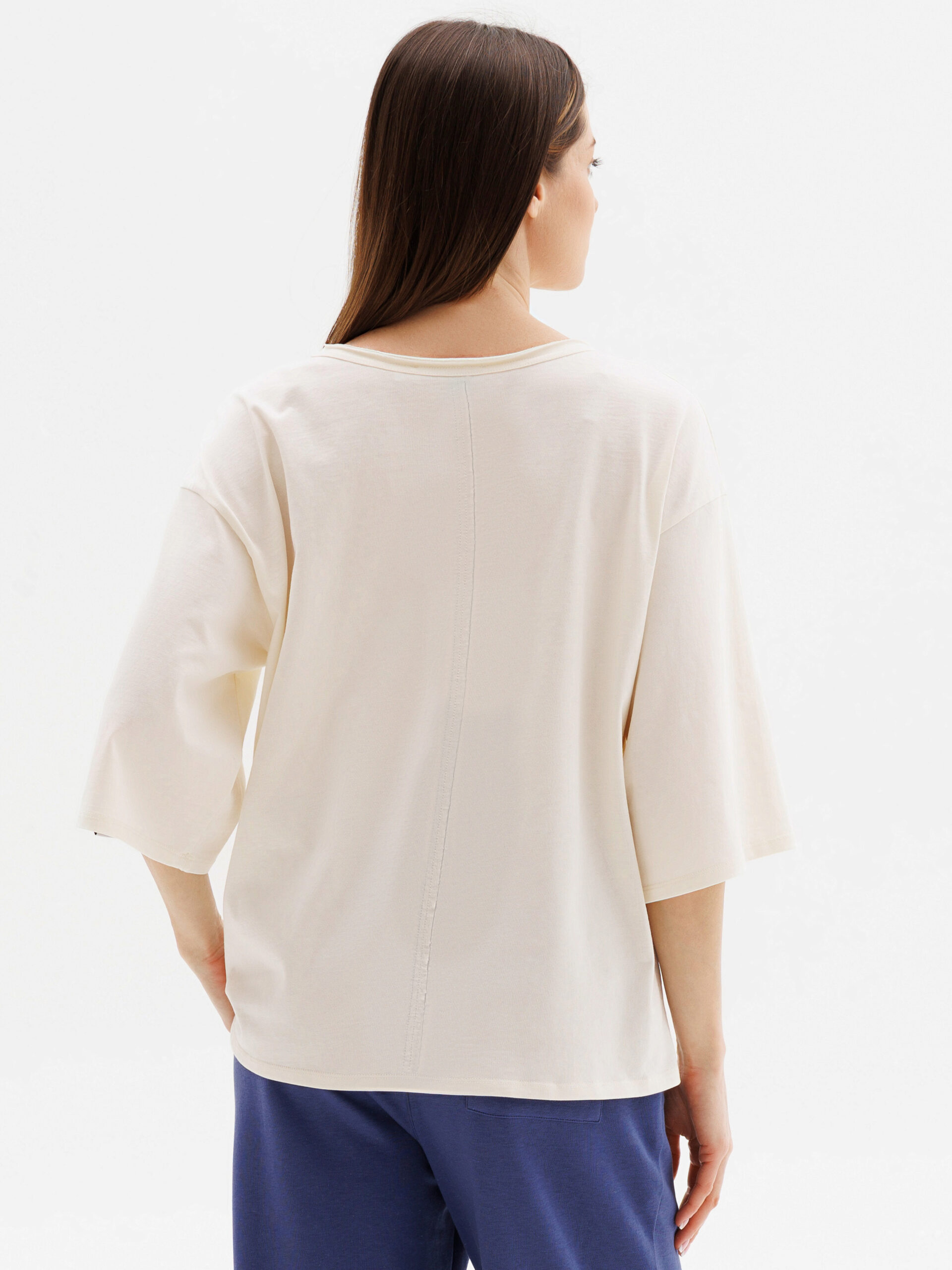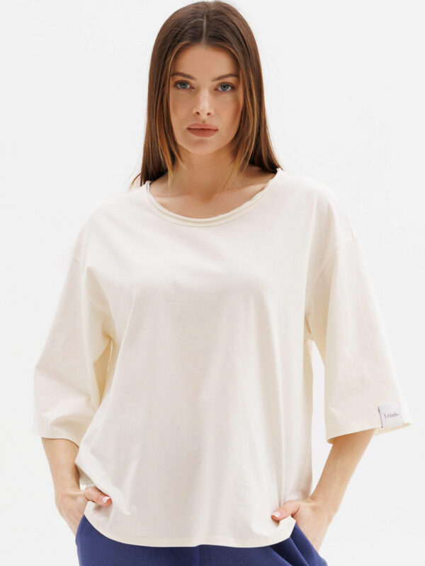 Oversized cut with elbow-length sleeves for freedom and relaxed fit