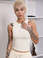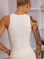 This women’s cotton tank top combines simplicity, comfort, and modern style. The soft natural fabric fits nicely to the body, providing comfort and freedom of movement throughout the day. Thanks to the elastic structure of the fabric, the tank top emphasizes the figure without constricting or restricting movement. The classic sleeveless cut and rounded neckline create a neat silhouette that is easy to combine with any look, from sporty to casual. The white shade adds lightness and looks harmonious in any combination. This is a basic item that you will want to wear every day—under a shirt, jacket, or as a standalone piece. The tank top gives you a feeling of confidence, naturalness, and comfort with every movement. Ordering and buying a women’s cotton tank top online means choosing quality that you can feel from the first touch.