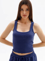 Available in soft blue, fresh green, and classic navy — this cropped tank top offers a perfect fit and a clean look.