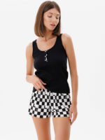Design: Elegant cut with accent buttons and printed shorts