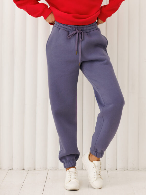 Women’s fleece pants designed for comfort, warmth, and unrestricted movement. The cotton-based fabric with added polyester is pleasant to the touch, breathable, and retains its shape even after washing. Inside, there is a soft fleece lining that provides softness and comfort, creating a feeling of care with every touch. The dark blue shade adds versatility: the pants can be easily paired with a hoodie, sweater, or basic top, creating the perfect outfit for any day. The elastic waistband ensures a comfortable fit, while the soft cuffs keep their shape and add a neat silhouette. This model is for those who appreciate comfort without frills: comfortable at home, when traveling, or during walks in the fresh air. You can order and buy these fleece pants online to have an item in your wardrobe that combines warmth, practicality, and style that is always appropriate.