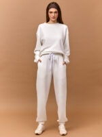 Lightweight cotton women’s pants from the SOFT DROP collection are a versatile staple for a minimalist wardrobe. The white shade is combined with a straight cut and comfortable fit, providing freedom of movement and a neat silhouette without unnecessary details. Natural cotton is pleasant to the touch, breathable, and retains its shape after washing. An elastic waistband with a drawstring ensures a comfortable fit, and the thoughtful length allows you to wear the pants with sneakers or loafers. These are basic pants for everyday wear: for home, walks, travel, or coffee with friends. They are easy to combine with T-shirts and jumpers from the capsule collection, creating a complete look in the style of modern comfort. Order and buy white pants online from the SOFT DROP capsule collection — a great base that works with any top.