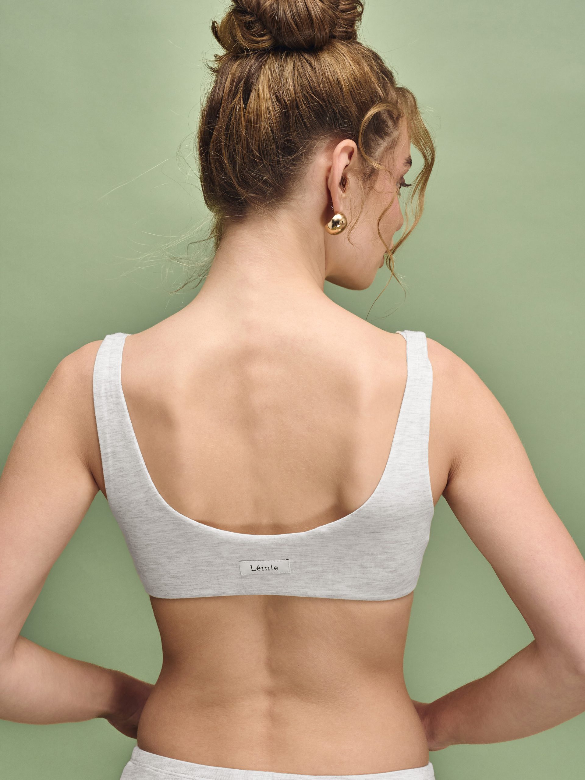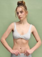 A top that feels like an essential addition to your wardrobe: nothing feels constricting, just comfort and a flattering silhouette. The fit is similar to a bra-top: open shoulders, a V-neckline with a twisted “wrap” detail at the front. It provides gentle bust support and looks very put-together − both as a standalone statement piece and as a base layer under a hoodie, shirt, or cardigan. It works for lounging at home, for days out on the town, and as everyday women’s clothing in a sporty-casual style − when you want minimalist women’s clothing without any fuss. The top is available in three shades: heather gray, classic gray, and light green. Each color has its own vibe − from a subtle base to a fresh accent that adds lightness and naturalness to your look. The viscose fabric with added elastane feels pleasant against the skin, drapes softly over the figure, and looks neat all day long. It is smooth to the touch, has a light natural sheen, and holds its shape well without sacrificing comfort in motion. This women’s basic top is easy to incorporate into your loungewear or pair with bottoms for a complete outfit. You’ll want to order it and buy it right away paired with bottoms from NUA for a complete look with a twist. The fabric’s shade may vary slightly from the image due to the characteristics of photography and color rendering on different devices.