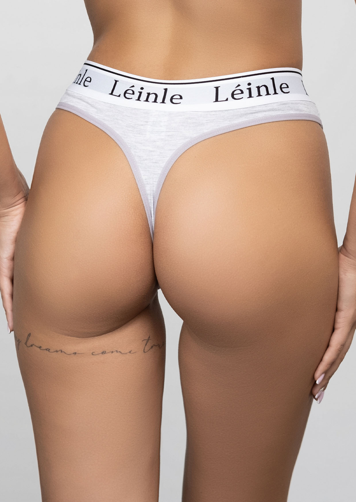 Women’s thongs are all about minimalism, comfort, and attractiveness in one. They are made of soft cotton that feels pleasant against the skin and allows it to breathe. Thanks to their minimalist cut, thongs are invisible under any clothing, even the thinnest fabric. The smooth elastic waistband with the Léinle logo does not pinch, comfortably holds the garment in place at the waist, and adds a stylish accent. The light gray color emphasizes neatness and versatility, making the model a basic item for every day. These panties are designed for women who value freedom of movement and naturalness, without compromising between comfort and aesthetics. They go perfectly with cotton tops, creating a balanced and stylish look. You can order and buy women’s cotton thongs online and add basic underwear that combines simplicity, quality, and comfort to your wardrobe.