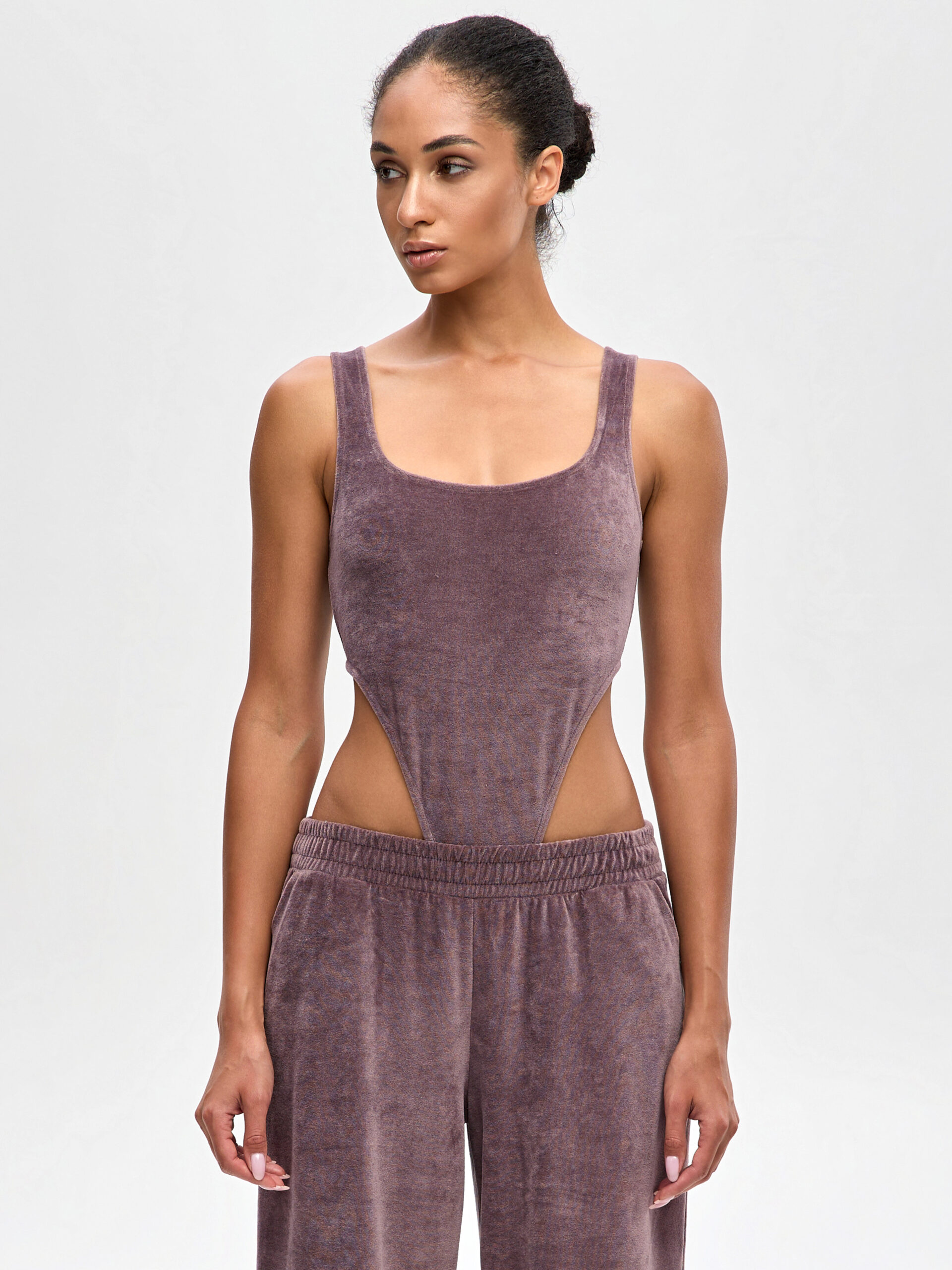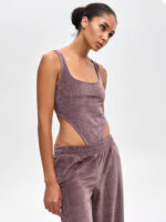 Графічний виріз на талії, що бере акцент на себе – «боді для щоденного образу», яке доречно виглядає і з денімом, і з штанами колекції. Трендовий вражаючий look – це одяг у відтінку «какао», що підкреслює форму. Він не сковує рухів, ідеальний для міського темпу. Легко замовити боді та скласти капсульні луки на кожен день! Продумана посадка та еластична основа м’яко огортають фігуру, зберігаючи чисту лінію без заломів під жакетом чи кардиганом. Оксамитова поверхня додає тактильної насолоди, а колір працює як нейтраль – поєднується з холодними і теплими відтінками. Це жіночий одяг з м’якої тканини, який легко підтримує ритм: офіс зранку, вечірні плани після роботи, подорожі вихідними. Якщо плануєш купити боді онлайн, отримуєш базу, що впевнено тримає форму й не потребує складної стилізації. Велюровий одяг для жінок тут – це про мінімалізм у деталях і максимум ефекту в образі – достатньо додати піджак або oversize джемпер для жінок, щоб змінити настрій.