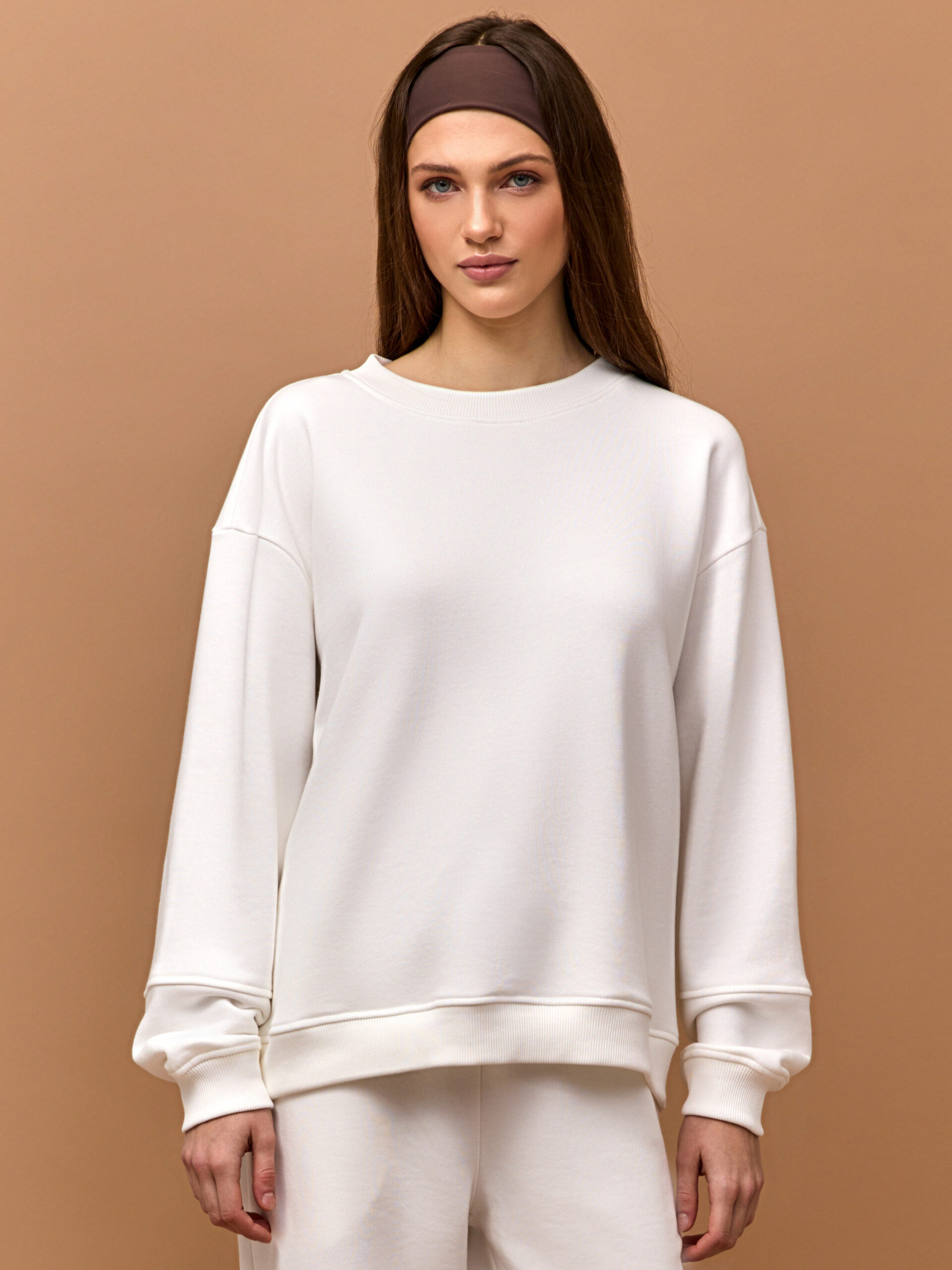 М’який і світлий жіночий джемпер з бавовни із колекції SOFT DROP створений для відчуття затишку й внутрішнього спокою. Його білий відтінок символізує чистоту та легкість, гармонійно поєднується з будь-якими кольорами гардеробу. Джемпер має вільний, продуманий крій, що не обмежує рухів і додає образу невимушеності. Гладка фактура тканини й мінімалістичні лінії підкреслюють сучасний комфорт і природну жіночність. Виготовлений з натуральної бавовни, він приємний до тіла, дихає й забезпечує комфорт у будь-яку пору року. Ідеальний варіант для відпочинку, прогулянок або вихідних у місті. Замовити та купити джемпер білого кольору онлайн із капсульної колекції SOFT DROP та додати до свого базового гардеробу частинку м’якості й тепла.