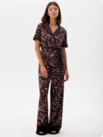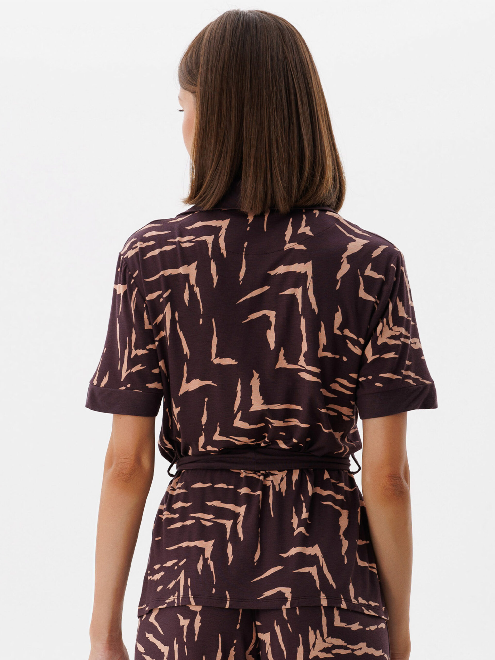 Темно-коричневий колір зі світло-бежевим абстрактним принтом для сучасного вигляду.