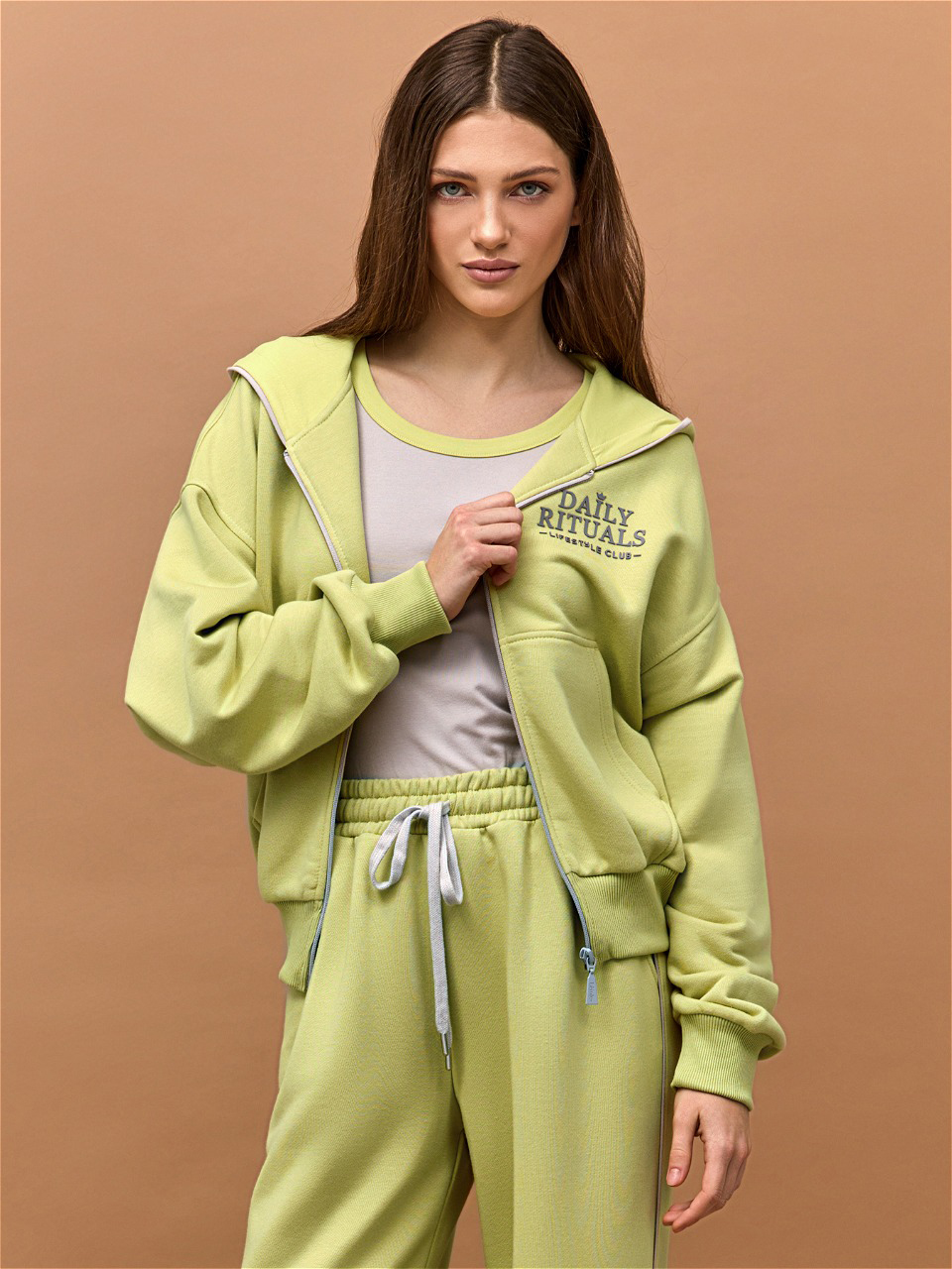Цей жіночий джемпер з бавовни у жовтому відтінку поєднує легкість і енергію. Капюшон і блискавка додають спортивної нотки, лаконічний напис підкреслює характер колекції SOFT DROP — м’який, спокійний, сучасний. Продуманий крій дає комфорт і свободу рухів, не втрачаючи акуратного силуету. Тканина з натуральної бавовни дихає, приємна до шкіри та зберігає форму після прання. Цей базовий джемпер ідеально поєднується з штанами з колекції — створюй цілісний капсульний образ у стилі мінімалізму. Підійде для міських прогулянок, подорожей або вихідних, коли хочеться залишатися в русі, але без метушні. Замовити та купити джемпер жовтого кольору онлайн із капсульної колекції SOFT DROP — свіжий акцент твого сучасного комфорту.