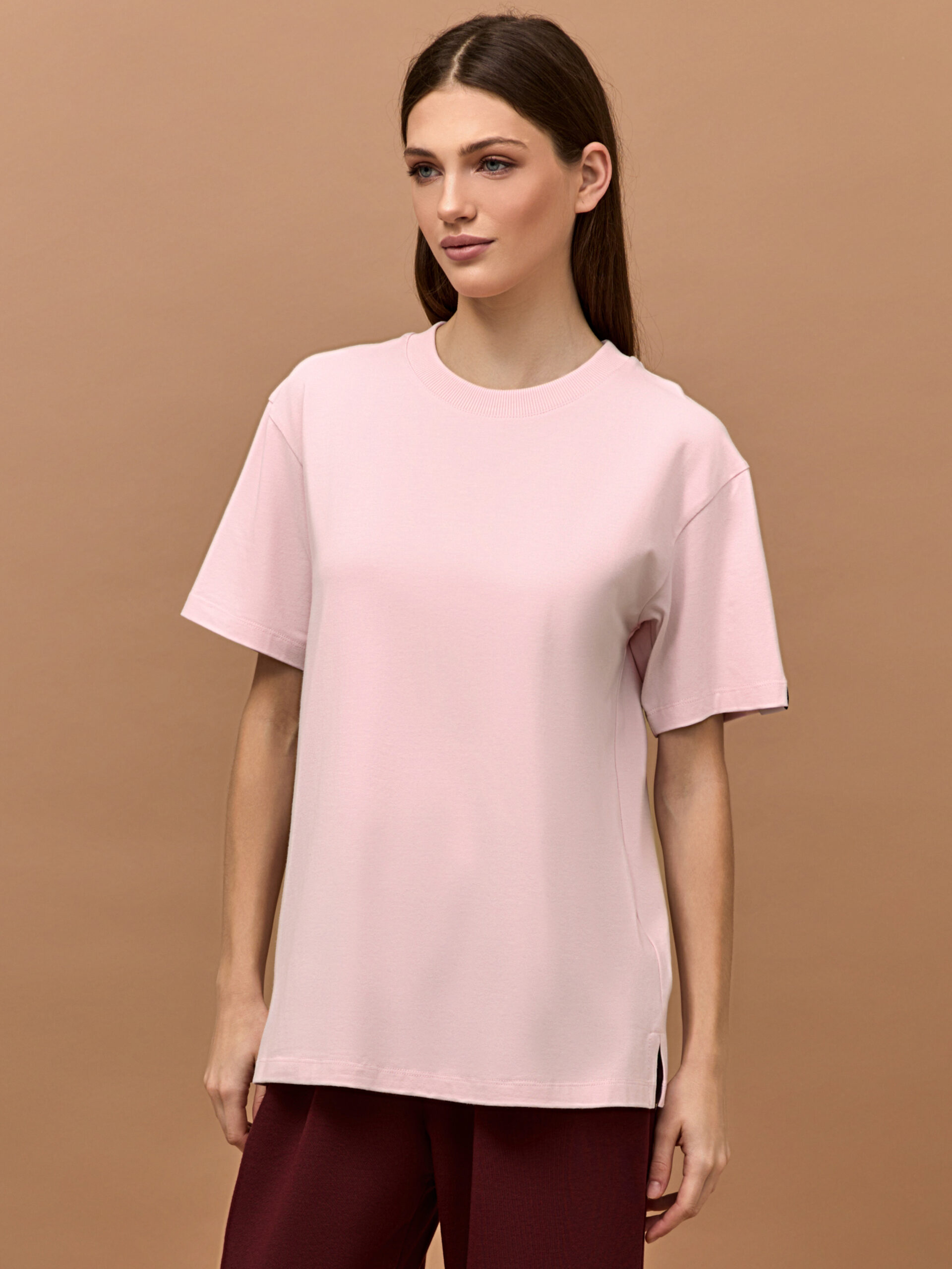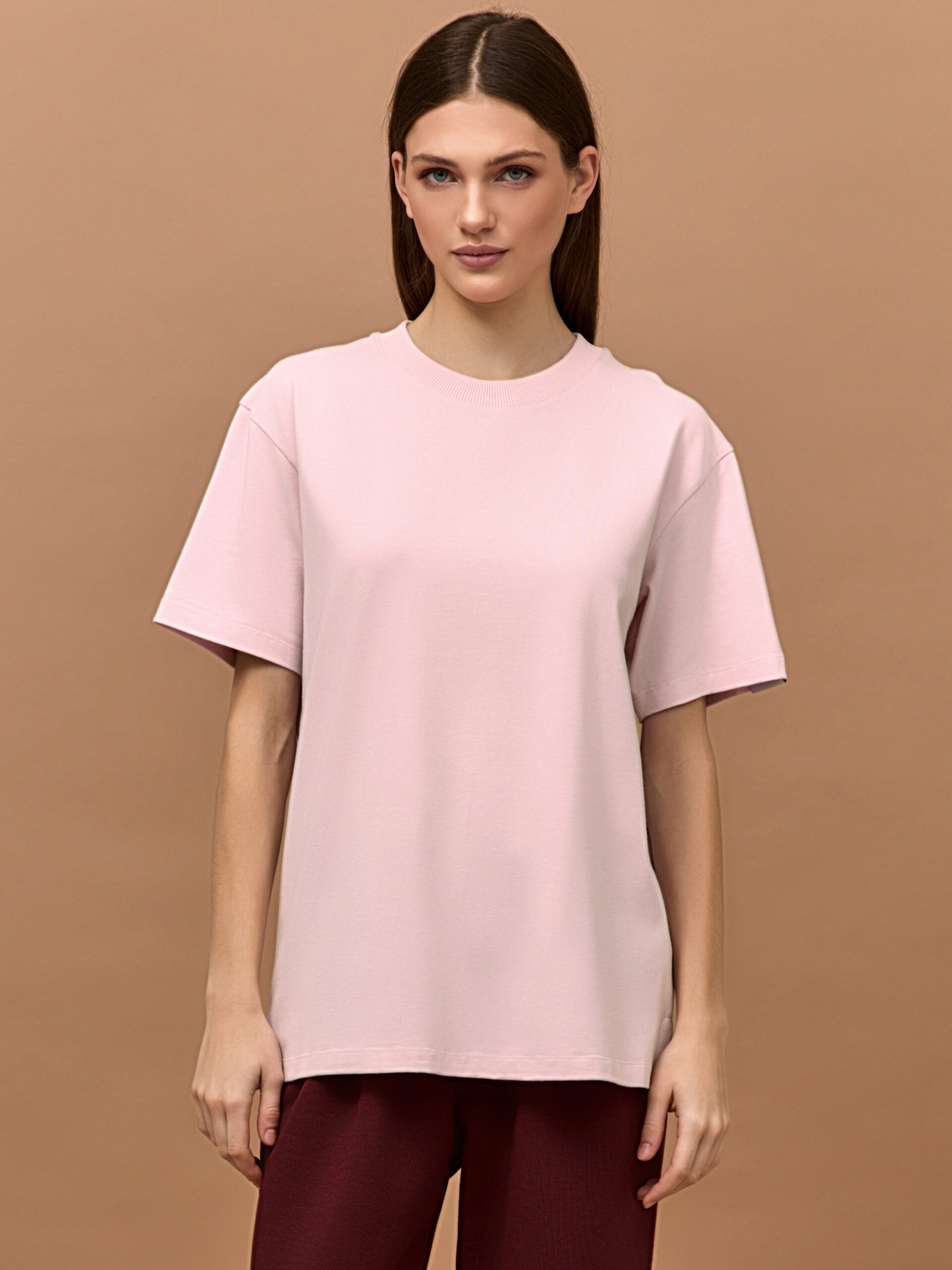 Ніжна жіноча футболка з бавовни у рожевому відтінку створена для моментів спокою, легкості та вашого щоденного комфорту. Її м’яка, приємна до тіла фактура огортає шкіру делікатно, створюючи відчуття гармонії з перших секунд. Лаконічний дизайн і прямий крій формують ідеальний силует, який легко поєднується з будь-яким низом − штанами, шортами чи спідницею. Така модель чудово тримає форму, не парить і дозволяє шкірі дихати завдяки натуральній бавовні високої якості. Вона стане тією базовою річчю, до якої хочеться повертатись щодня − незалежно від планів і настрою. Футболка підходить для дому, прогулянок, поїздок або відпочинку на вихідних, коли хочеться виглядати невимушено, але зі смаком. Поєднуйте її з речами з колекції SOFT DROP, створюючи м’які й збалансовані образи у стилі мінімалізму. Замовити та купити футболку рожевого кольору онлайн із капсульної колекції SOFT DROP − це додати ніжність і гармонію до свого сучасного стилю.