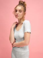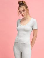 Футболка, яку хочеться носити постійно. Вона легка, стримана й природно витончена, без зайвих акцентів, що відволікають увагу. Сідає по фігурі акуратно, без тиску, делікатно підкреслює лінії тіла. Округлий виріз відкриває шию та ключиці, короткий рукав балансує силует, а м’який рубчик додає фактури без перевантаження. Модель представлена в кількох відтінках, серед яких сірий меланж – універсальний і спокійний, із легкою текстурністю кольору. Саме в цьому варіанті використана віскоза з еластаном. Тканина гладка, приємно прохолодна на дотик, м’яко ковзає по шкірі та добре пропускає повітря. Вона еластична, але стабільна, зберігає форму та виглядає акуратно навіть після активного носіння. Вертикальна текстура візуально витягує силует і додає образу структурності. Однотонні відтінки легко вписуються в базовий гардероб і поєднуються з легінсами, шортами або халатом із колекції NUA. Це універсальна жіноча футболка на щодень − для дому, міста чи подорожі. Її варто замовити та купити як основу для спокійних, продуманих образів. Відтінок тканини може мати легкі відмінності від зображення через особливості фото та передачі кольору на різних пристроях.