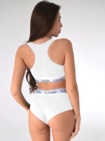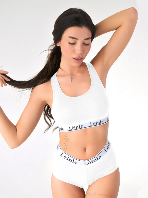 Білий комплект білизни – це поєднання лаконічного дизайну, зручності й упевненості, яку хочеться відчувати щодня. Модель створена для тих, хто цінує простоту без компромісів: м’яка бавовна дихає, ніжно торкається шкіри та забезпечує комфорт від ранку до вечора. Матеріал еластичний, тому білизна ідеально повторює форму тіла, не тисне й не перекручується. Бралет у спортивному стилі забезпечує природну підтримку без кісточок, даруючи свободу рухів. Еластична резинка з фірмовим логотипом Léinle додає акценту та сучасного звучання образу. Трусики-шорти з високою посадкою гармонійно сідають по фігурі й залишаються комфортними в будь-яких умовах. Білий колір – універсальний вибір, який підкреслює природність і мінімалістичну естетику. Цей комплект легко поєднує стиль і функціональність, створюючи базу для впевненого щоденного ритму. Ви можете замовити та купити комплект білизни з бавовни онлайн, щоб почуватися комфортно й виглядати бездоганно.