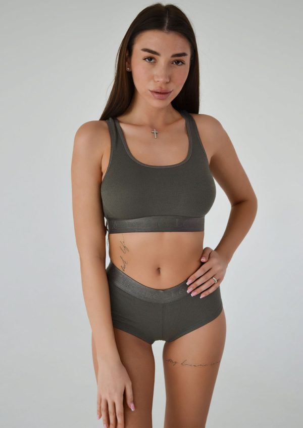 Темно-зелений комплект білизни створений для тих, хто обирає комфорт у найделікатнішому його прояві. Тканина з віскози та еластану м’яко огортає тіло, дарує гладкість і природну еластичність, завдяки якій рухи залишаються вільними протягом усього дня. Матеріал приємний до шкіри і створює відчуття легкості − таке, якого хочеться щоранку. Топ зі зручними широкими бретелями забезпечує м’яку підтримку без тиску. Шортики з комфортною посадкою делікатно повторюють силует і дарують відчуття повного комфорту під будь-яким одягом. Еластичний пояс з логотипом Lé додають комплекту стильності й сучасності. Темно-зелений відтінок передає глибину, впевненість і природний спокій − колір, який підкреслює жіночність без зайвої демонстративності. У цьому комплекті легко почуватися собою й насолоджуватись власним ритмом. А зробити його частиною свого гардеробу зовсім не складно – комплект білизни можна замовити та купити у декілька кроків.