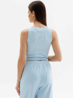 Жіноча майка — це базова річ, яка поєднує стиль, практичність та комфорт. Пропонуємо вибір з трьох кольорів: ніжний блакитний, свіжий салатовий і класичний синій. Завдяки натуральним тканинам ця майка забезпечує приємні відчуття, м’яко прилягає до тіла і чудово підходить для повсякденного носіння.