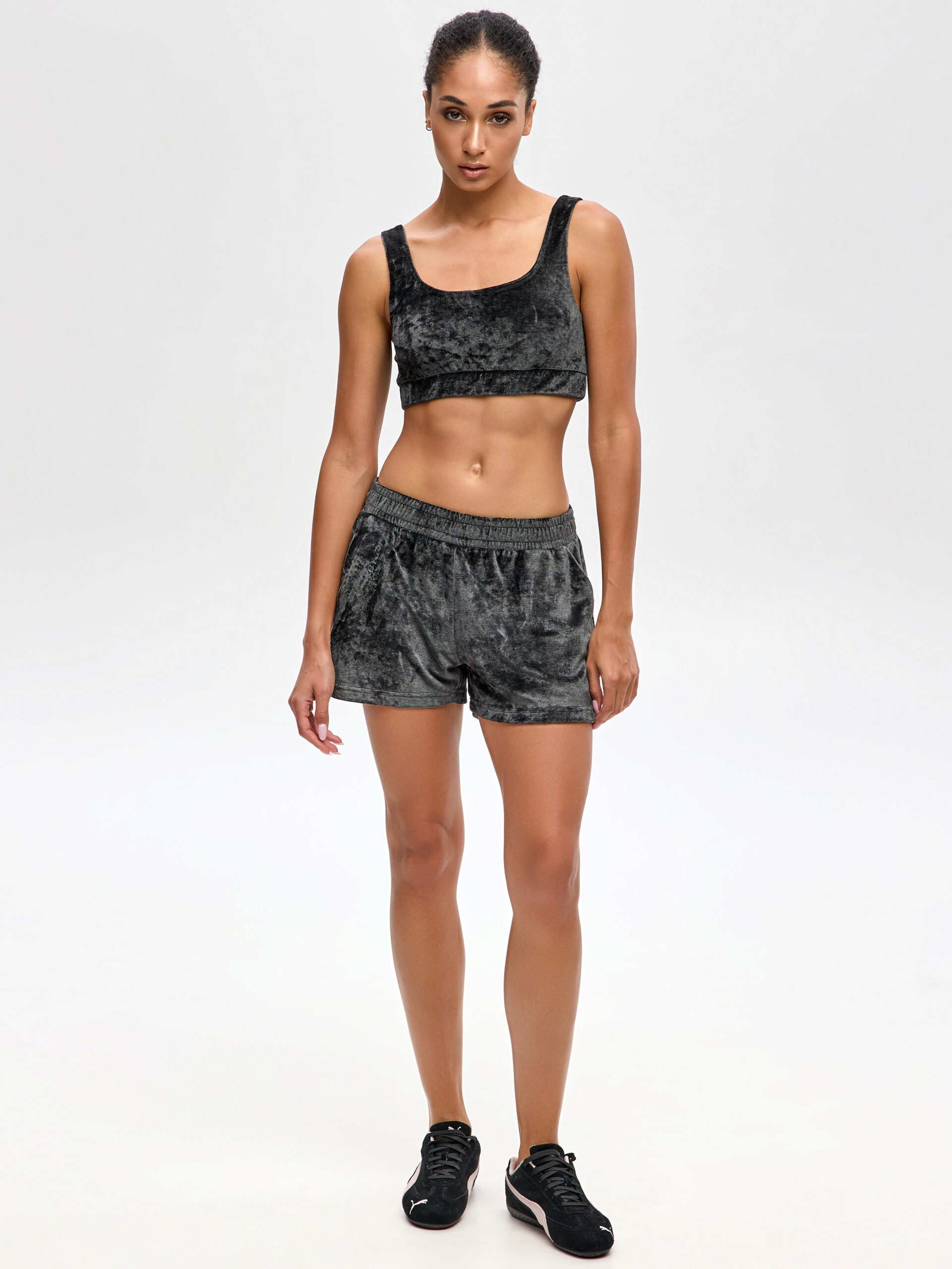 Легкі, тактильно приємні й візуально «охайні» – ідеальні для теплих вечорів і швидких міських виходів. Темно-сірий відтінок з м’яким переливом додає глибини образу та легко поєднується з верхами колекції. Завдяки віскозі у складі велюр стає легким, повітропроникним і водночас зберігає чіткий контур після носіння. Середня посадка та комфортний пояс на талії. Прямий, вільний крій та акуратні кишені в бокових швах, довжина до середини стегна зі зручним підгином. Ці велюрові шорти стануть базою на щодень: у поєднанні з майкою чи топом виходить стриманий, сучасний сет. Ви можете легко замовити та купити цей жіночий одяг із м’якої тканини для щоденного стилю.