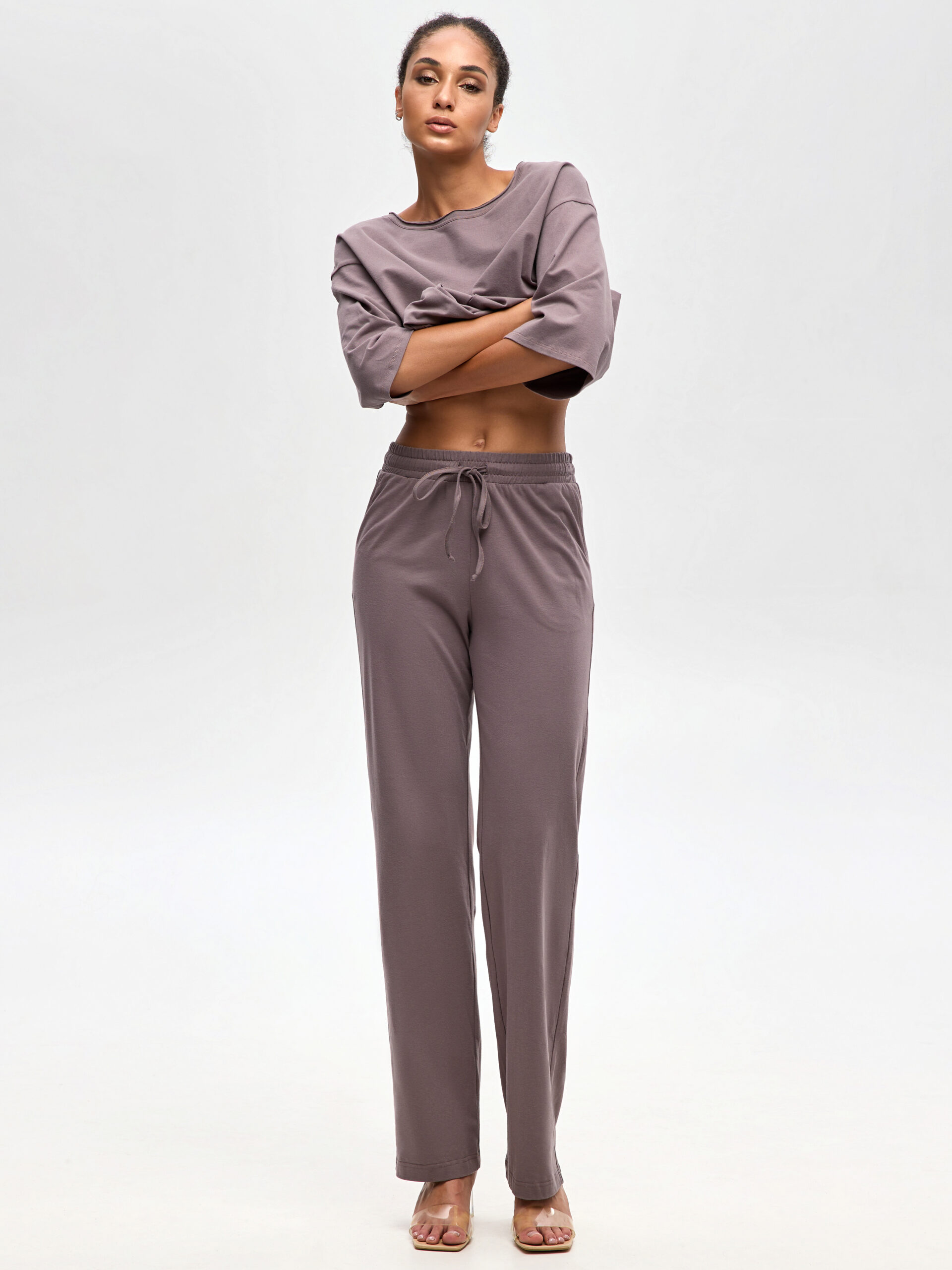 Акуратна посадка, рівна штанина і м’який пояс – жіночі бавовняні штани, що поєднуються з топом або oversize-джемпером. Це комфортний одяг для жінок, який працює від ранку до вечора: від кави вдома до повсякденних справ. Хочеш купити чи замовити жіночі штани? Ця модель дає саме ту саму легкість руху і тактильну насолоду! Відтінок «какао» універсальний і стриманий – виглядає доречно в будь-якому сценарії: офіс, зустрічі, прогулянки. Пряма штанина візуально витягує силует, не додаючи об’єму, а еластичний пояс м’яко фіксує талію без зайвого тиску. У парі з комфортним топом – мінімалістичний міський сет, а із джемпером на блискавці – тепліший, більш спортивний настрій. Це жіночий одяг з м’якої тканини: дихає, приємно торкається шкіри, зберігає форму протягом дня. Якщо плануєш замовити онлайн, ці штани стануть базою для капсульного гардеробу, яка легко міксується з кедами, лоферами. Практичність, стиль і відчуття впевненості – у кожному кроці.