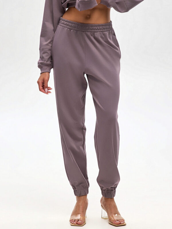Штани у відтінку какао − це продуманий комфорт у сучасному форматі. Гладка тканина приємна до тіла, а еластичний пояс і манжети забезпечують ідеальну посадку без зайвого тиску. Висока посадка формує акуратний силует, який легко адаптується до щоденних образів. Модель гармонійно поєднується з топами та джемперами з цієї колекції, створюючи цілісний, збалансований лук. Ідеальний варіант для щоденних образів, коли хочеться виглядати зібрано без зайвих зусиль.