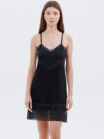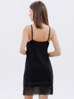 Ця елегантна чорна сорочка — втілення ніжності та витонченого стилю. Ажурне мереживо на ліфі плавно переходить у тонкі бретелі, надаючи образу легкості та романтики. Легка тканина з віскози приємно торкається шкіри, створюючи відчуття комфорту протягом усього вечора. Декоративна мереживна вставка по низу додає вишуканості й делікатно підкреслює силует. Ідеальний вибір для затишного домашнього відпочинку або особливих моментів, коли хочеться виглядати ніжно й жіночно.