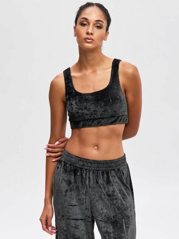 Міні-топ, що збирає образ і додає акцент на плечах. Темно-сірий відтінок м’якого велюру працює як прикраса: стримано й виразно водночас. Це комфортний топ із велюру, який сідає м’яко, не обмежує рухів і тримає форму протягом дня. Тканина віскоза – приємна, гарна пружність і повітропроникність. Округло-квадратний виріз відкриває ключиці, а широкі бретелі дають підтримку. Еластична підгрудна смуга гарно фіксує посадку. Рівні шви та довжина до лінії ребер – пасує до високої талії штанів чи шортів. Носіть соло як базу чи під халат вдома – вийде гнучка добірка «дім-місто». Якщо шукаєте топ для щоденного образу з акцентом на комфорт та розкіш, обирайте саме його. Трендовий велюровий одяг, який легко замовити онлайн.