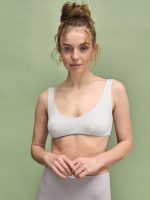 Гладкий базовий варіант топу без декоративних елементів і акцентуючих швів, які можуть читатися крізь тканину. Саме тому він непомітний під одягом: під футболкою, сорочкою, светром чи жакетом нічого не просвічується і не вибивається з силуету. Форма проста й акуратна: округла лінія декольте, широкі бретелі, рівна спинка. Посадка щільна, але комфортна − топ м’який, приємний до тіла, не створює зайвого тиску. При цьому він підтримує форму грудей і зберігає зібраний вигляд протягом дня. Топ представлений у трьох відтінках: сірий меланж, класичний сірий та світло-зелений. Кожен колір має свій настрій − від стриманої бази до свіжого акценту, який додає образу легкості та природності. У ньому відчувається втілення натуральності: нічого зайвого, тільки форма, колір і комфорт. Сірий меланж виглядає стримано й делікатно, з відчуттям спокою та чистоти. Віскоза з еластаном м’яко огортає тіло, плавно лягає по фігурі та зберігає структуру протягом дня. Підходить як жіночий базовий топ на щодень, як домашній варіант або як універсальна річ під будь-який образ. Замовити собі такий топ можна окремо або купити в комплекті з низом із колекції NUA − для цілісного, спокійного та повного образу. Відтінок тканини може мати легкі відмінності від зображення через особливості фото та передачі кольору на різних пристроях.