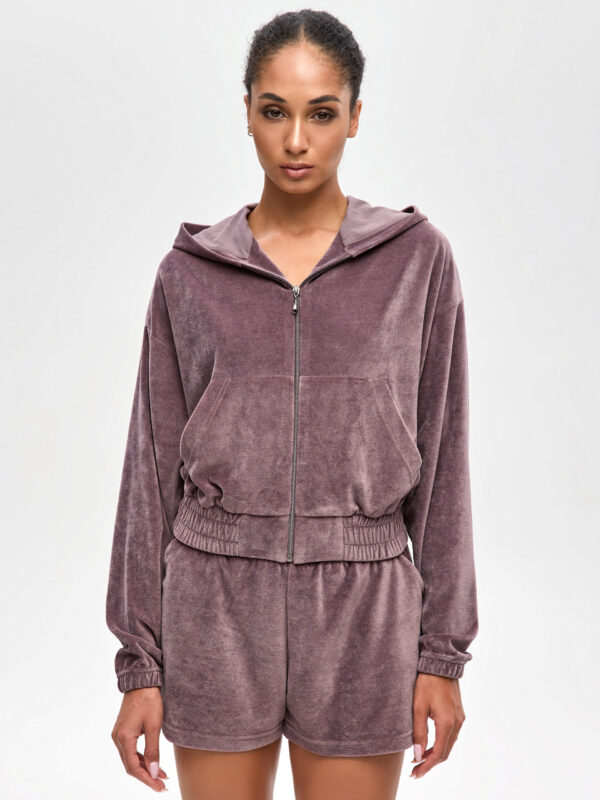 Объемный силуэт, капюшон и впечатляющий вид – яркий и стильный джемпер на молнии, закрывающий все прохладные сценарии. Это настоящий oversize джемпер для женщин: мягкий, тактильный, легко наслаивающийся на топ или боди. Можно купить или заказать онлайн и собрать велюровую трендовую одежду в формате готового сета. Бархатная поверхность джемпера добавляет глубины оттенка «какао», а молния – удобно в движении и дороге. В паре с женскими велюровыми брюками на резинке выходит повседневный городской лук, со штанами – более легкий, динамичный силуэт. Это велюровая одежда для женщин, которая уместна после тренировки, в путешествии, на выходных и в офисе с минималистическим топом. Капюшон придает чувство защищенности, а oversize-посадка оставляет простор для многослойных комбинаций. Если планируешь купить джемпер онлайн, он станет ядром капсульного гардероба из велюра (и не только!) – вещь, держащая образ и задающая настроение.
