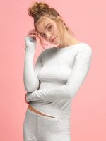 Этот женский джемпер в цвете серый меланж мягко обволакивает тело и создает ощущение легкости без лишнего внимания к деталям. Приталенный силуэт аккуратно подчеркивает фигуру, длинные рукава вытягивают линию рук, а горловина лодочкой красиво открывает плечи и придает образу чистоты. Удлиненные рукава с прорезью для большого пальца выглядят современно и позволяют зафиксировать посадку, создавая изящный силуэт. Сбоку размещена лаконичная брендированная нашивка Léinle – сдержанный акцент, подчеркивающий минимализм модели. Материал – вискоза с добавлением эластана. Ткань гладкая, пластичная, приятная на ощупь, с легким естественным скольжением. Она хорошо пропускает воздух, адаптируется к движениям и обеспечивает комфорт в течение всего дня. Это базовый женский джемпер в сером меланже, который легко сочетается с лосинами, брюками или джинсами. Если нужна минималистичная женская одежда для дома и города, стоит заказать и купить эту модель без лишних сомнений. Оттенок ткани может иметь легкие отличия от изображения из-за особенностей фото и передачи цвета на разных устройствах.