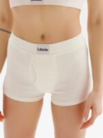 Комплект состоит из мягкого топа на тонких бретелях с удобной посадкой и высоких трусиков-шорт, нежно подчеркивающих фигуру.