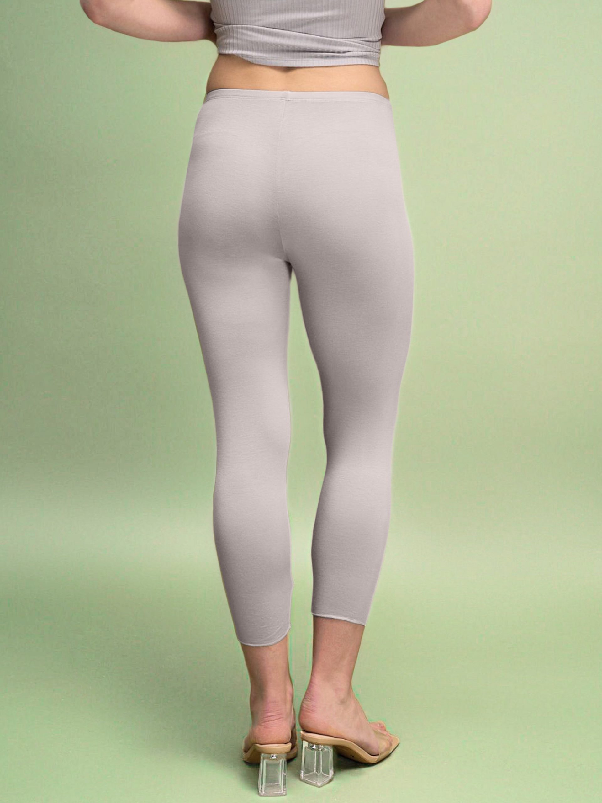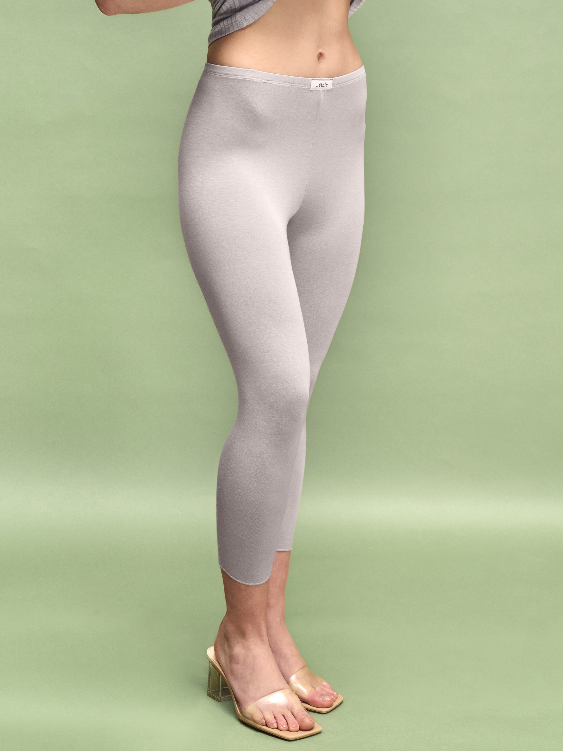 Женские лосины, которые не отвлекают – они работают на ощущение тела. Приталенный силуэт мягко повторяет линии, высокая посадка формирует чистую вертикаль и подчеркивает талию без лишнего давления. Длина до щиколотки выглядит лаконично и современно, а тонкая отделка низа не создает объема. Сверху – аккуратная брендированная деталь, придающая минималистичный характер. Это базовые женские лосины для дома, города и путешествий. Модель представлена в трех цветах: светло-зеленом, сером и сером меланже. Светло-зеленые и серые выполнены из модала с эластаном – ткань гладкая, дышащая, эластичная и комфортная в движении. Это минималистичная женская одежда на каждый день, которую легко сочетать с топом, джемпером или рубашкой. Если ищете женские лосины из натуральной ткани для комфорта и уверенного силуэта, стоит заказать и купить эту модель уже сейчас. Оттенок ткани может иметь легкие отличия от изображения из-за особенностей фото и передачи цвета на разных устройствах.
