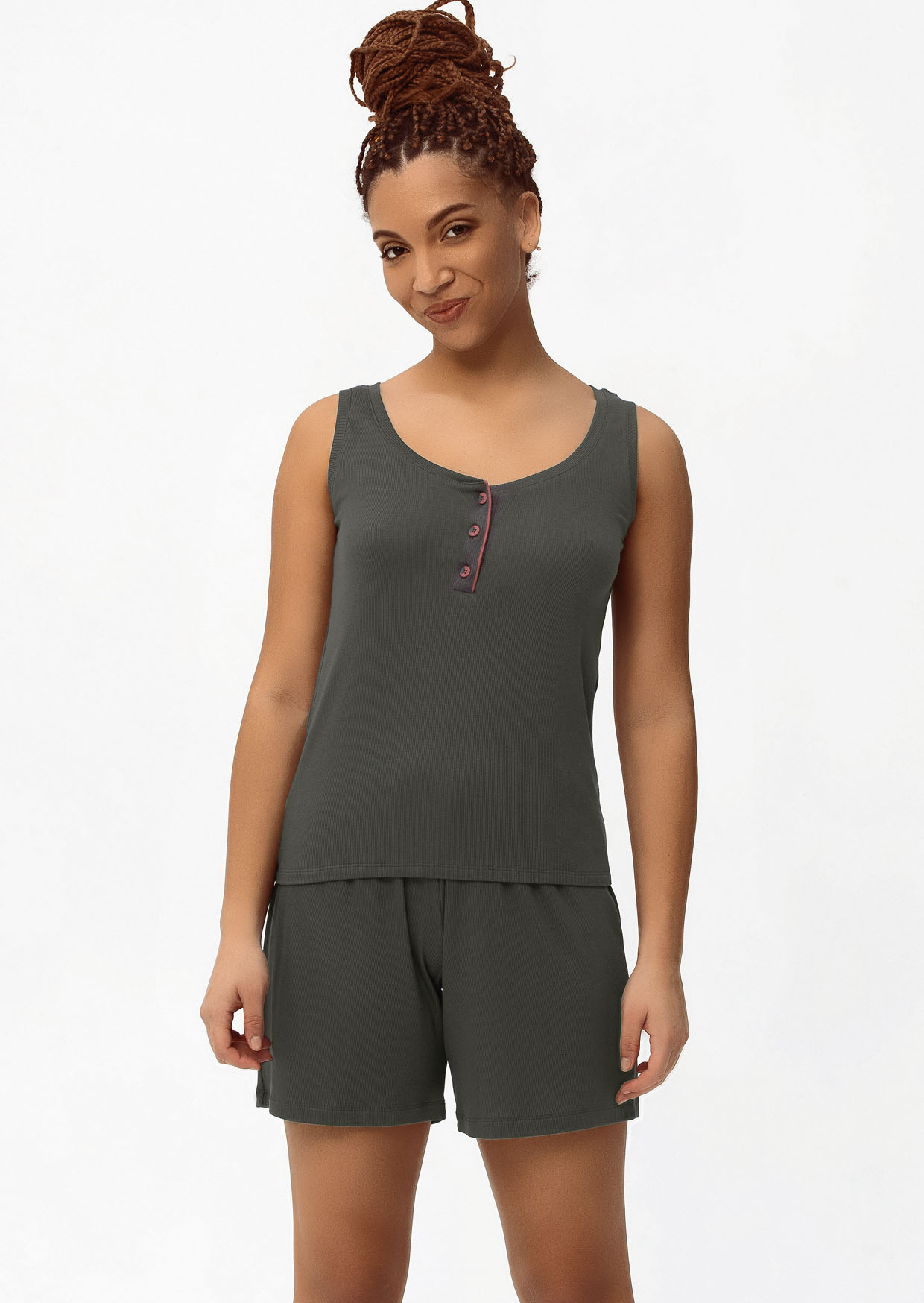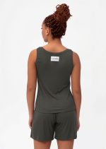 Удобная женская пижама из вискозы темно-зеленого цвета − практичный вариант для дома и повседневного использования. Комплект состоит из майки и шорт простого, продуманного кроя. Майка комфортно сидит по фигуре, не сковывает движений и хорошо держится во время активности, а сзади размещен аккуратный логотип − сдержанный акцент без лишнего внимания. Шорты имеют удобную посадку, не давят и позволяют свободно двигаться. Вискоза мягкая, приятная к телу и хорошо пропускает воздух, поэтому пижама подходит для сна, домашнего отдыха. Благодаря лаконичному виду комплект удобно использовать не только дома, но и для легких занятий спортом, йогой или растяжкой. Практичный вариант для путешествий. Эту женскую пижаму из вискозы легко заказать и купить онлайн – простое решение для тех, кто ценит комфорт, функциональность и спокойный современный стиль.