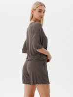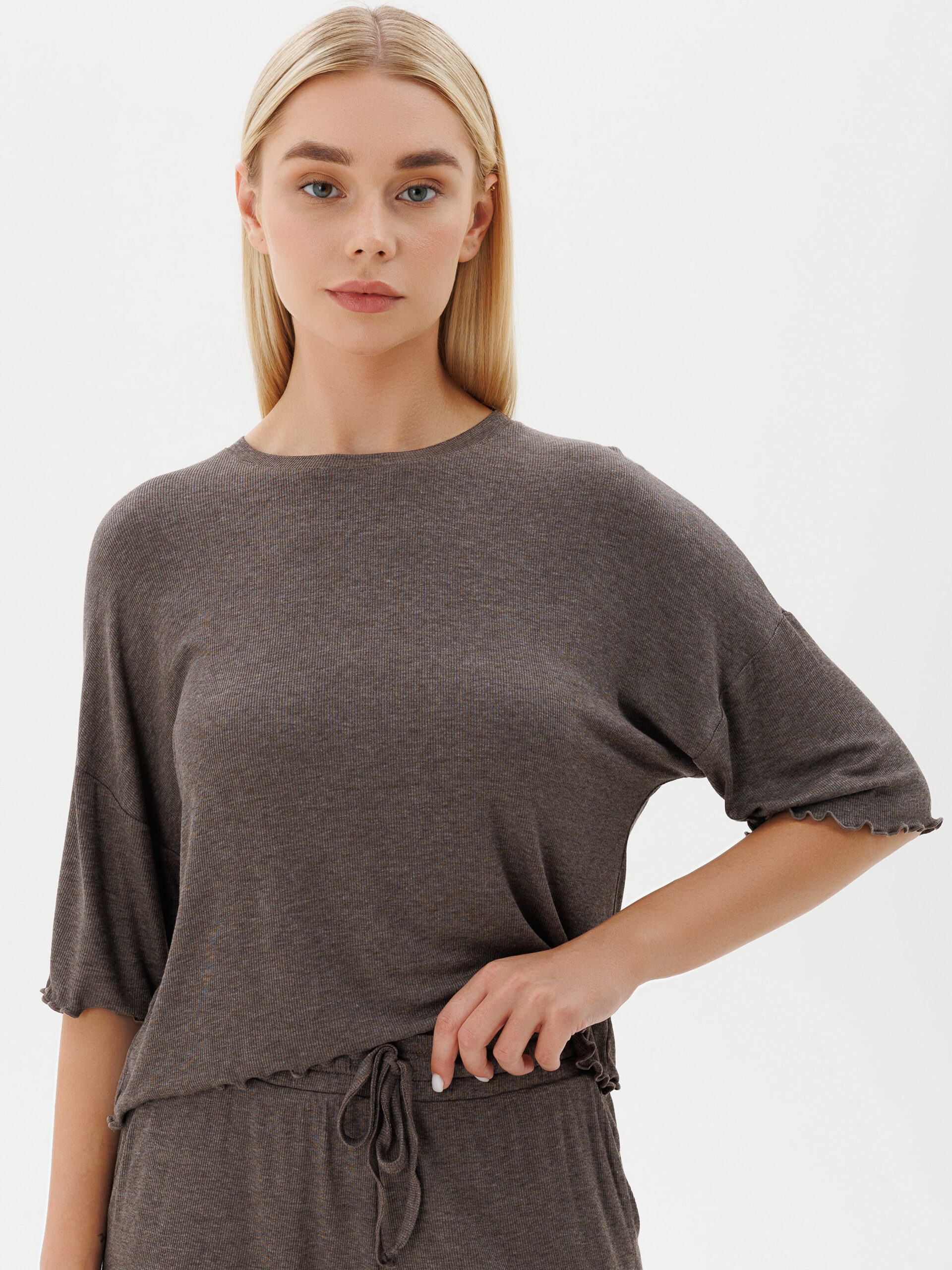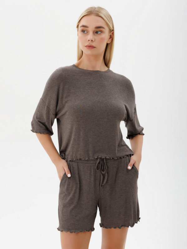 Стильный комплект одежды для дома, состоящий из просторной футболки и шорт с эластичным поясом. На каждый день утро и вечер – этот комплект станет вашим любимцем, когда вы дома.