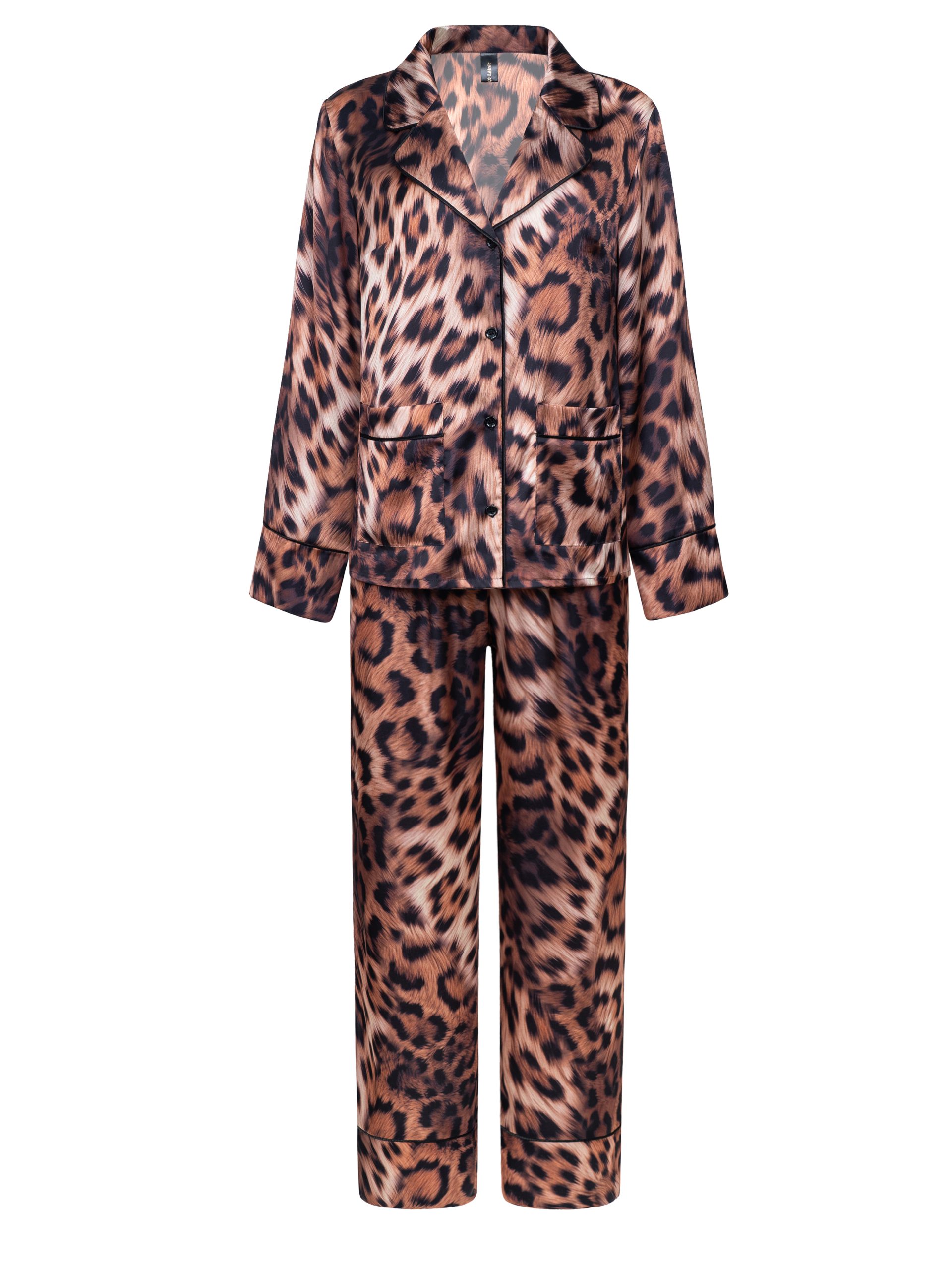Эта сатиновая пижама − про настроение, а не просто про сон. Про те вечера, когда мир стихает, а ты остаёшься наедине с собой. Леопардовый принт звучит мягко и уверенно, без резкости − как лёгкая провокация, не требующая объяснений. Рубашка с классическим воротником и пуговицами создаёт ощущение собранности, а свободные штаны дарят полную свободу движений и внутреннее спокойствие. Сатин нежно касается кожи, приятно охлаждает в жару и окутывает комфортом в тишине дома. Ткань гладкая, приятная, с деликатным блеском, который красиво ловит свет и делает образ завершённым даже без зеркал. В этой пижаме легко начать утро без спешки, приготовить кофе, открыть окно и позволить себе медленный ритм. Это не просто женская пижама − это домашний образ с характером. Она выглядит стильно, носится легко и не требует ничего лишнего. Сатиновую пижаму легко заказать и купить для себя или в подарок − как маленькую роскошь, которая всегда рядом.