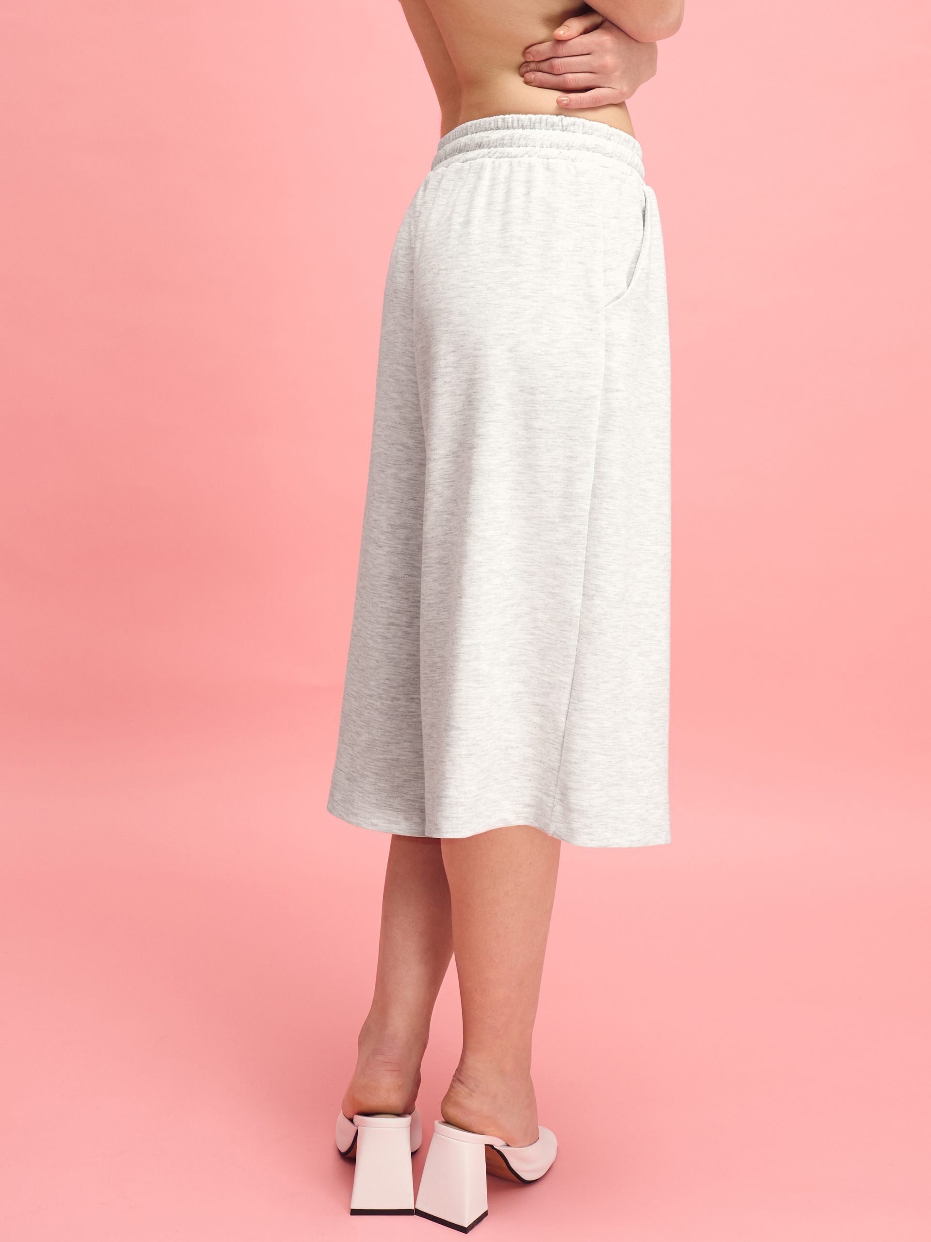 Шорты-бермуды — об естественности и женском начале NUA, без излишеств, в балансе формы и движения. Длина ниже колена создает удлиненный силуэт, уравновешивает пропорции и придает уверенности. Они не открывают лишнего, оставляют пространство для движения и воздуха, формируя ощущение внутренней опоры. Именно такая сдержанная форма сегодня звучит особенно актуально. Серый меланж подчеркивает минималистичный характер модели — глубокий, спокойный оттенок легко интегрируется в базовый гардероб и выглядит современно как в домашних образах, так и в городских сочетаниях. Широкий крой работает естественно: шаг легкий, ткань движется мягко, линия бедра не ограничена. Эластичный пояс с завязкой позволяет регулировать посадку, карманы добавляют практичности. Бермуды легко стилизуются — с топом, футболкой или бра, на каблуках или с минималистичной обувью. Ткань на основе вискозы с добавлением полиэстера и эластана гладкая, деликатная к коже и эластичная. Она хорошо пропускает воздух, отводит влагу и сохраняет форму в течение дня. Материал пластично ложится в движении, не создает лишнего объема и выглядит опрятно даже после активной носки. Если хочется купить женские шорты-бермуды не просто как тренд, а как продуманную базу, эту модель стоит заказать как часть капсулы. Оттенок ткани может иметь небольшие отличия от изображения из-за особенностей фотографии и цветопередачи на разных устройствах.