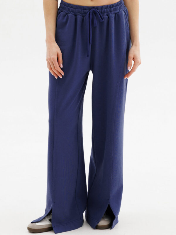 Глубокий насыщенный синий цвет подчеркивает элегантность модели и легко сочетается с базовыми футболками, топами и спортивным бра. Благодаря удобной резинке и регулируемому шнурку на талии брюки максимально комфортны и универсальны – правильный выбор для ежедневного использования дома, прогулок и активного образа жизни.