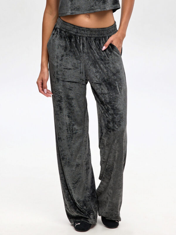 Сдержанная эстетика и максимальный комфорт. Широкие штаны с бархатной фактурой дарят свободу шага и собранный вид. Темно-серый цвет с мягким переливом уместен и дома, и в городе – работает днем и вечером. Велюр (80% вискоза, 20% полиэстер) – приятный к коже, воздухопроницаемый, держит контур после стирки. Посадка средняя, мягкий эластичный пояс, полная длина со «ниспадающим» ходом штанин, карманы в боковых швах. Минимализм и шик без лишних деталей! Эти женские велюровые брюки легко станут вашей базой гардероба на выход: комбинируйте с майкой, топами и жакетом. Их можно легко заказать онлайн и купить в сочетании с вещами из коллекции, формируя стильный и завершенный образ.